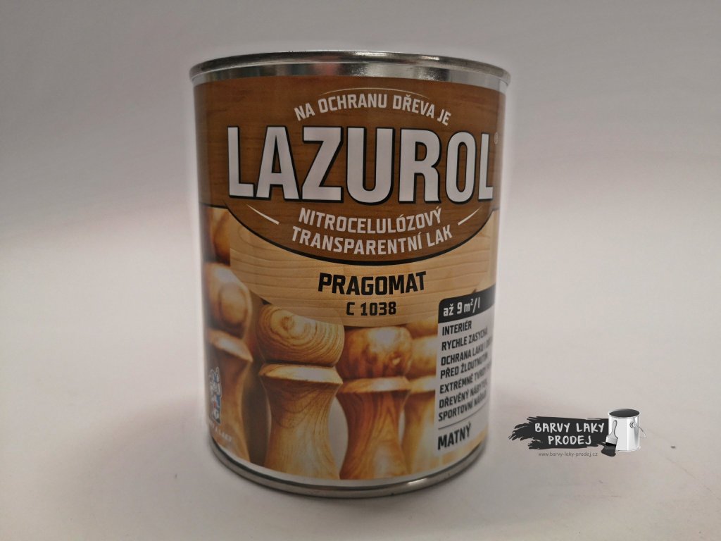 Lak C 1038 PRAGOMAT je určen pro vrchní matné bezbarvé nátěry dřevěných předmětů v interiéru. Je vhodný k povrchové úpravě dřevěného a proutěného nábytku (i sedacího), dřevěných a korkových předmětů v interiéru. Je vhodný také k přelakovánístarších nitrocelulózových a akrylátových nátěrů, (kromě podlahových ploch).